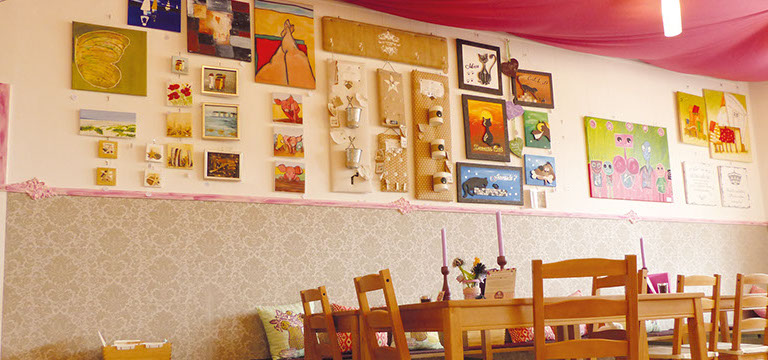 Dann sprich uns gerne an, denn du hast bei uns im Café die Möglichkeit, ein oder mehrere Fächer, Kleiderbügel oder -stangen, Postkartenständer oder Sonderausstellungsflächen wie Koffer oder Kommoden zu mieten und Selbstgemachtes verschiedenster Art zu verkaufen.
